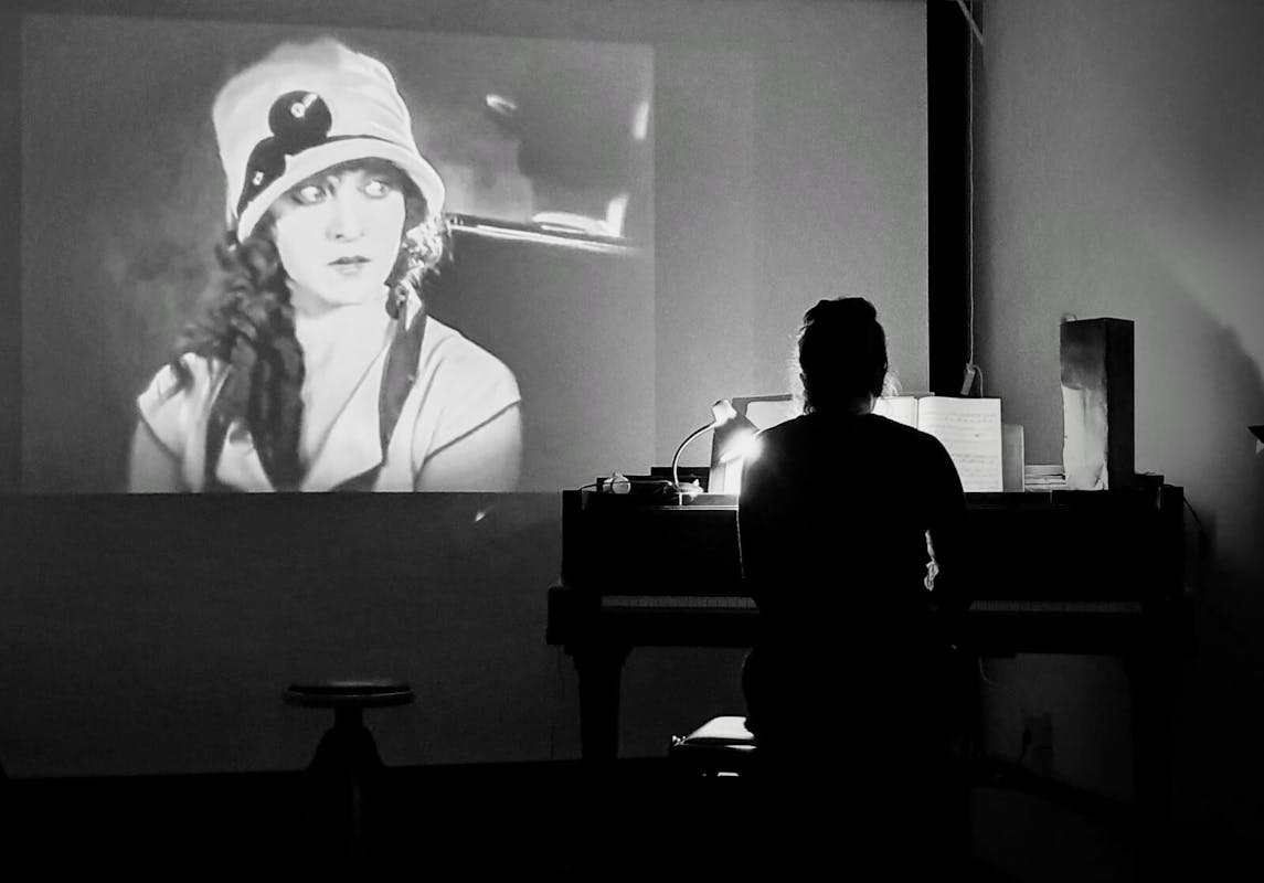 De films waren toen stil en de dialoog verscheen, waar nodig, in een geweldig bijschrift. Dit betekent echter niet dat de films in absolute stilte werden bekeken. De eerste openbare projectie van de gebroeders Lumière (Parijs 1895) werd begeleid door een pianist, omdat de live gespeelde muziek tijdens de film als een essentieel onderdeel van de voorstelling werd beschouwd. Het idee verspreidde zich snel naar alle bioscooplocaties (theaters, opera’s en beurzen). De muziek bij de films varieerde tussen fragmenten van grote klassieke composities en meer populaire liedjes. De keuze hing af van de interpretatie van het werk door de pianist. Ook de praktijk van improvisatie wordt gemeengoed, een vaardigheid die tegenwoordig nog maar weinig pianisten beheersen. Het werk was van hoog aanzien aangezien de pianist een breed repertoire nodig had, een enorm improvisatievermogen en veel creativiteit.