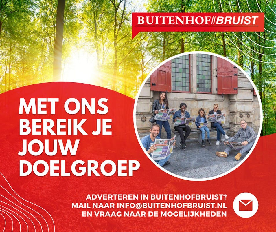 BuitenhofBruist is de ideale plek om te adverteren voor ondernemers en organisaties uit de buurt. BuitenhofBruist heeft geen winstoogmerk en we bieden kostendekkende tarieven aan. Ons doel is om al het moois in de Buitenhof zichtbaar te maken en ook voor de kleinere ondernemingen en organisaties het mogelijk te maken om op een relatief goedkope manier hun bereik te vergroten. Met een oplage van 14.000 kranten bereiken we alle adressen (behalve nee-nee stickers) in de Buitenhof, Voorhof en Tanthof-West.